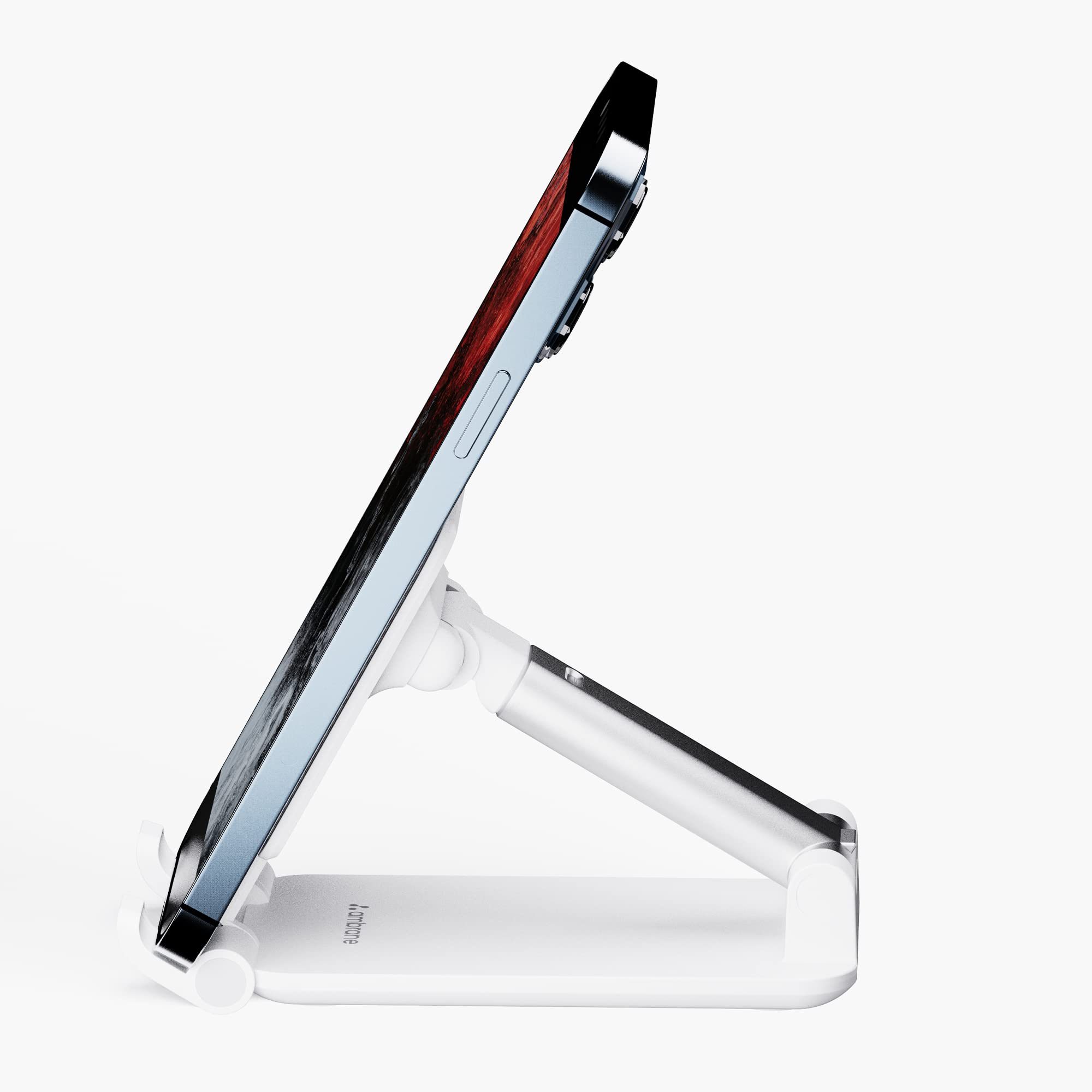 Ambrane Mobile Holding Tabletop Stand, 0-135 Perfect View, Height Adjustment, Wide Compatibility, Multipurpose, Anti-Skid Design (Twistand, White)
