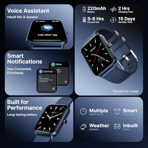 - SMART AI VOICE ASSISTANT FOR HANDS-FREE CONTROL – Use voice commands to check the weather, play music, set reminders, and manage tasks. The built-in AI voice assistant of ai smart watch delivers convenience for your daily routine.