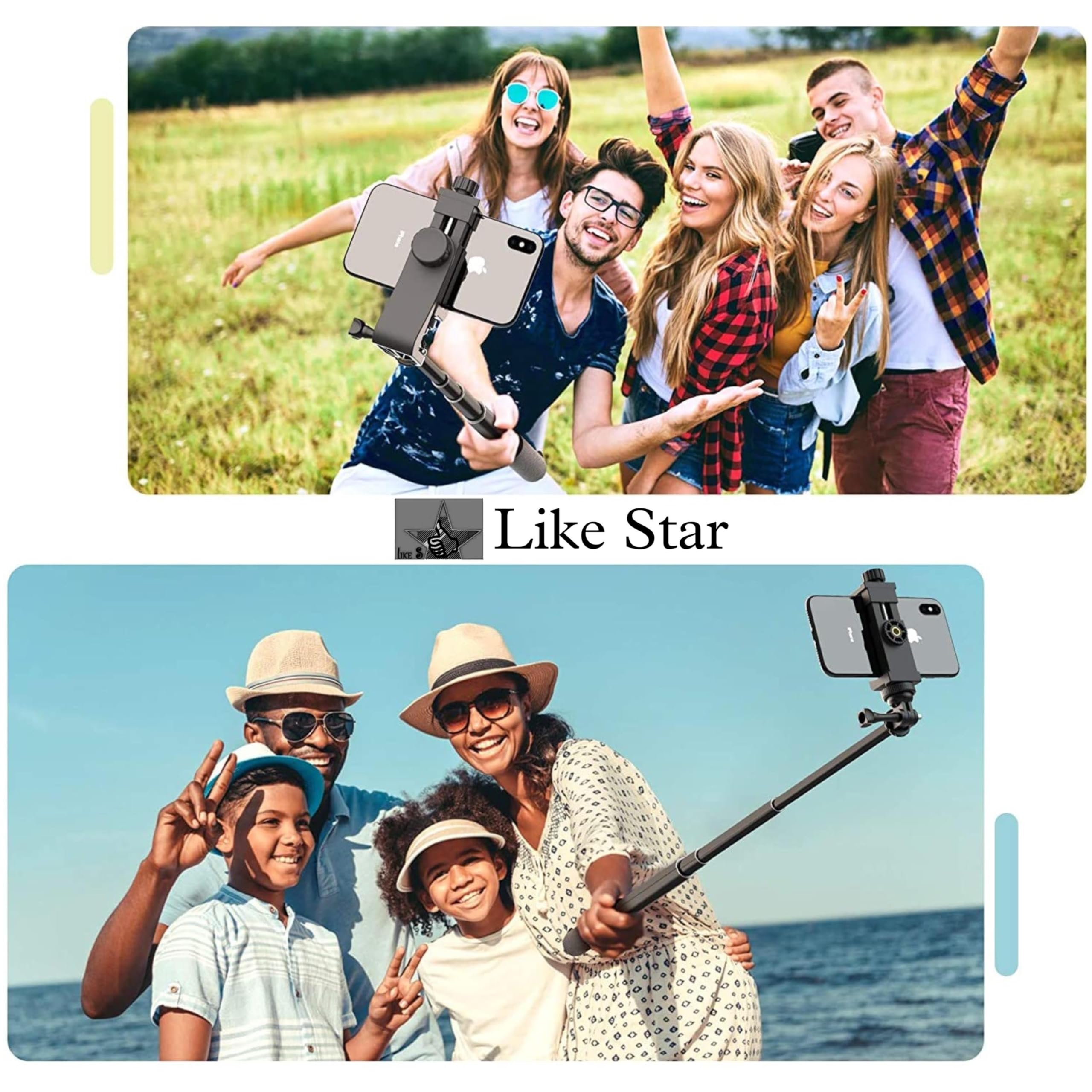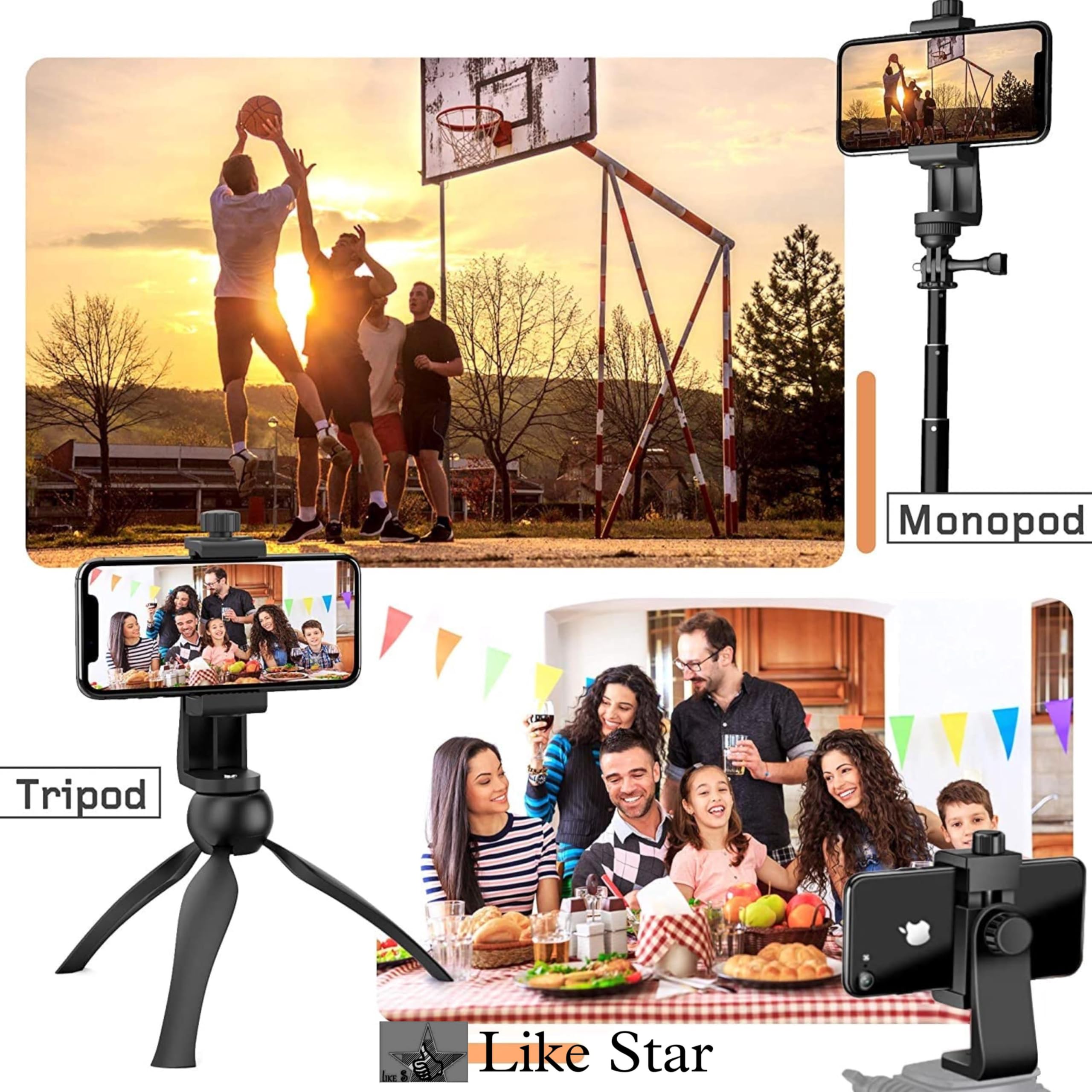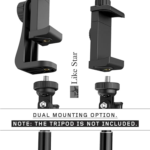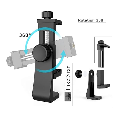 Like Star 360° Degree Mobile Phone Holder with Universal 1/4 Screw Adjustable Clamp Mobile Tripod Mount Adapter Compatible with Smartphones & TripodsnSelfie Stick (Black)