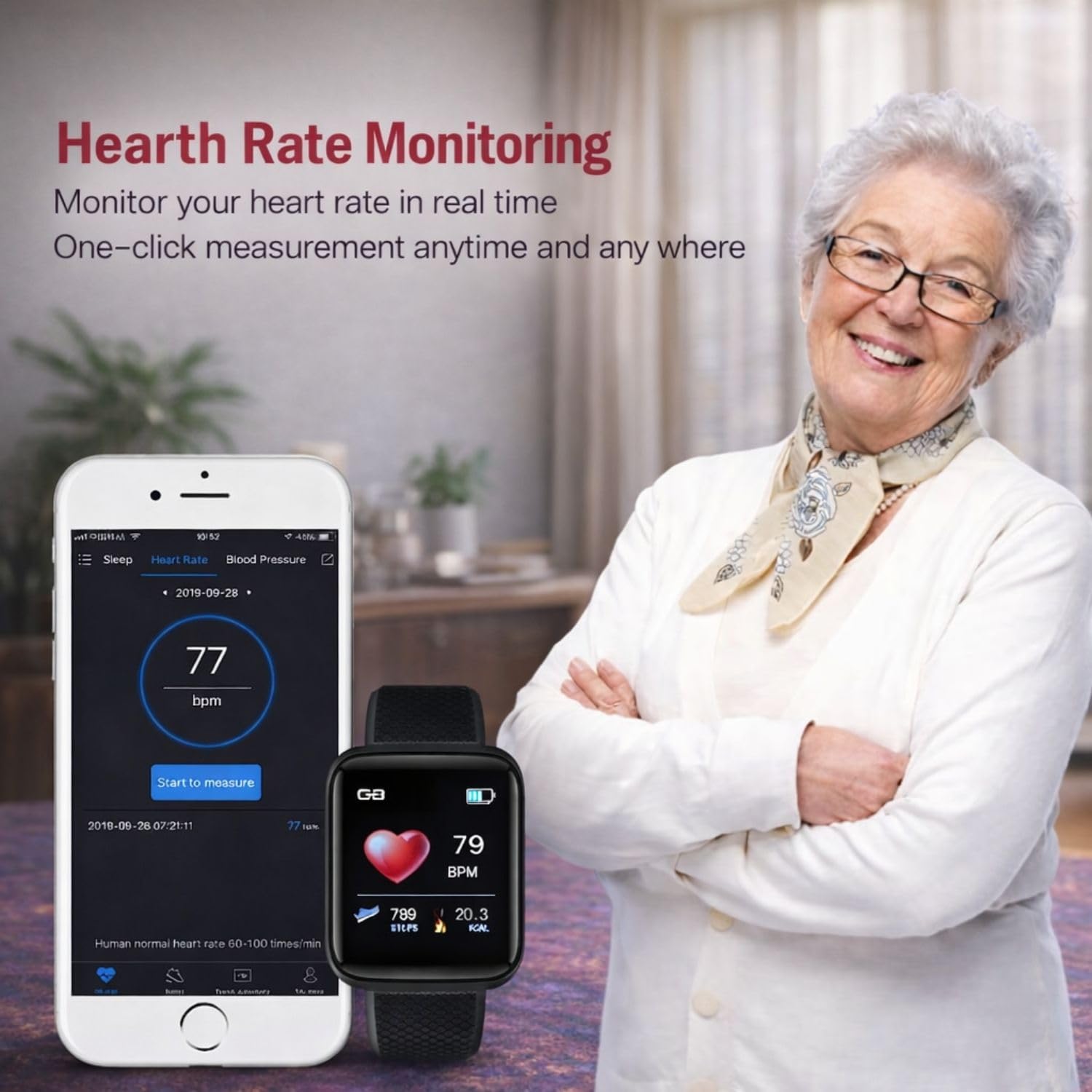- 【More Practical Gadgets & 9 Exercise Modes】- Smart watch has features with many practical tools, such as customized watch, alarm clocks, stopwatch, timer,music controller, sedentary reminder, Sleep Monitor, find phone. The APP’s name is FitPro, which works with Android 4.4 or iOS 8.0 and above, Bluetooth 5.0 and above smartphones only.
