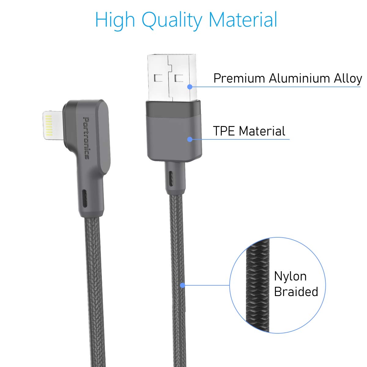 Portronics Konnect L 1.2M Fast Charging 3A 8 Pin USB Cable with Charge & Sync Function for iPhone, iPad (Grey)