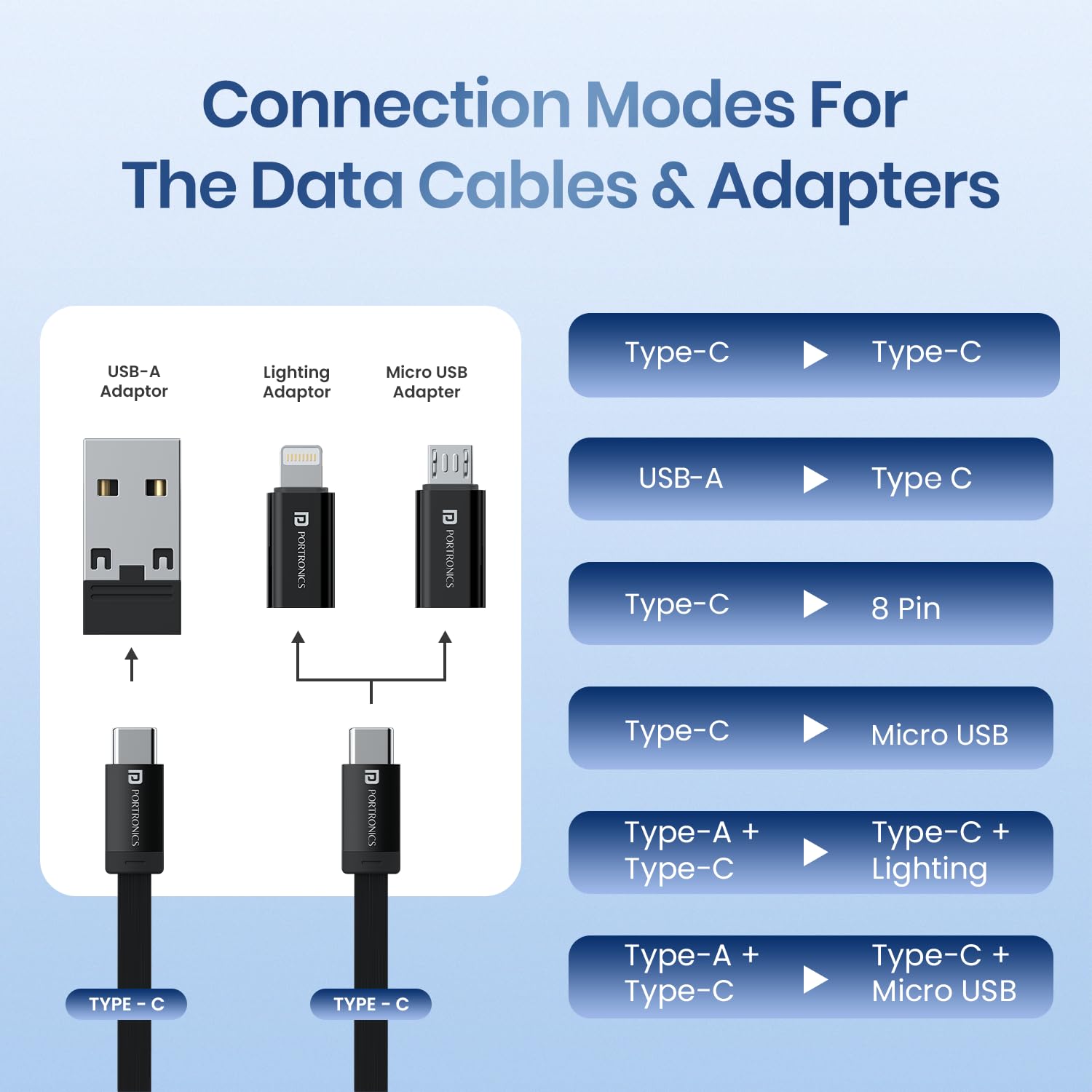 Portronics Snapcase 3 60W Multifunctional Fast Charging Data Cable Kit, Conversion Set USB A & Type C to Male Micro/Type C/Lightning, Data Transfer, Sim Storage, Sim Eject Pin, Pocket Size(Blue)