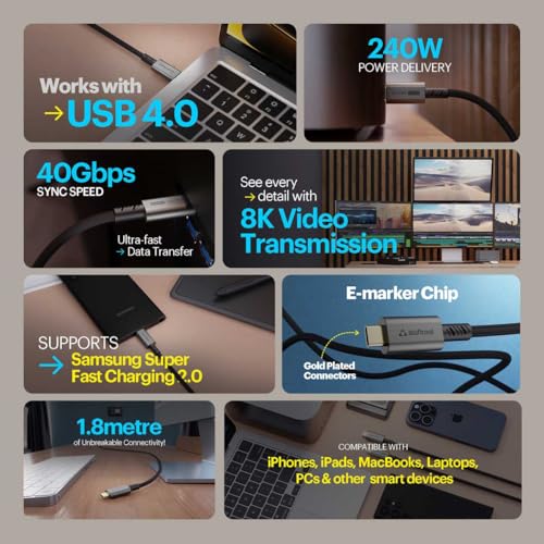 - [Transfer Data in the Blink of an Eye!]:Enjoy maximum sync speeds of up to 40 Gbps for ultra-fast data transfers, making it easier than ever to move large files, stream high-definition content, and back up your essential data in seconds. Whether you’re a creative professional working with high-resolution images and videos or a gamer downloading large files, this cable provides the speed and efficiency you need to keep your workflow seamless.
